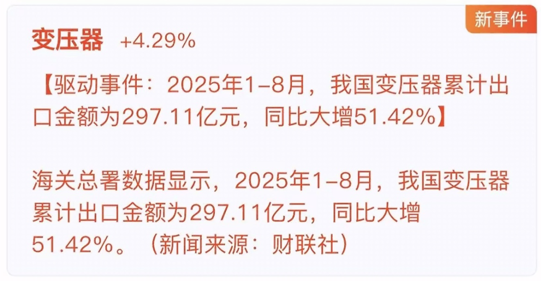 海关总署最新披露的数据令人震撼:2025年1至8月,我国变压器及静止式变流器累计出口金额高达2449亿元。其中,仅变压器单项产品的出口额就达到297.11亿元,同比增速高达51.42%,几乎占据了整个品类出口额的12%。