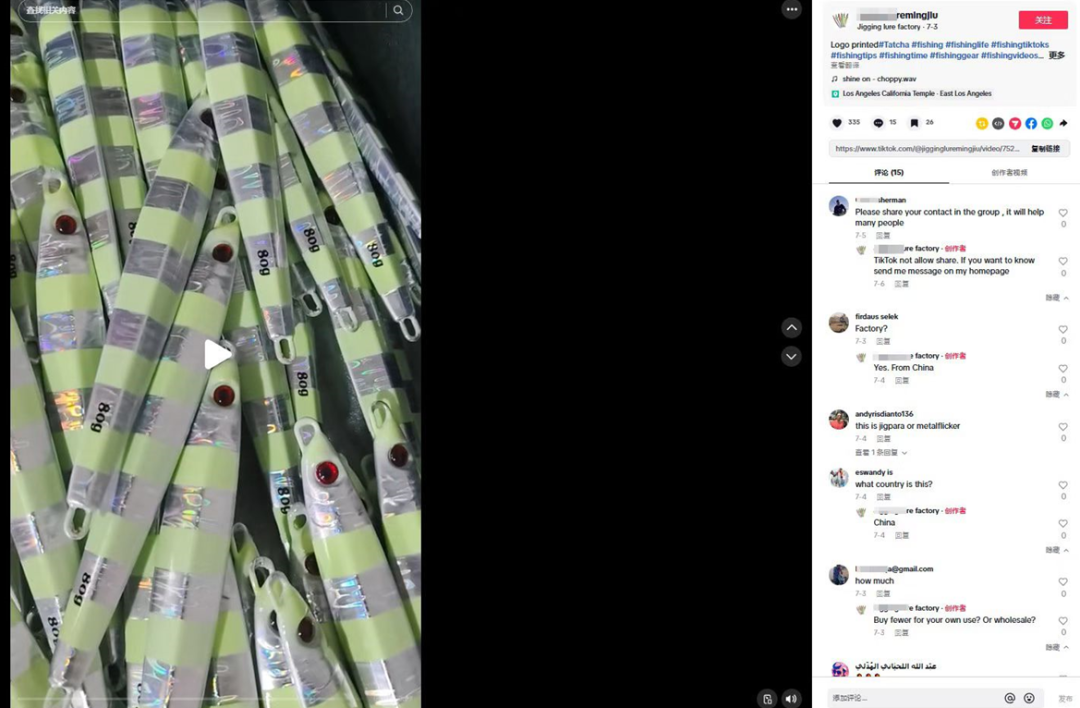 茂名某钓竿厂通过发布“一支钓竿的诞生”系列视频,三个月内获得 200+海外询盘,其中30%转化为实际订单。