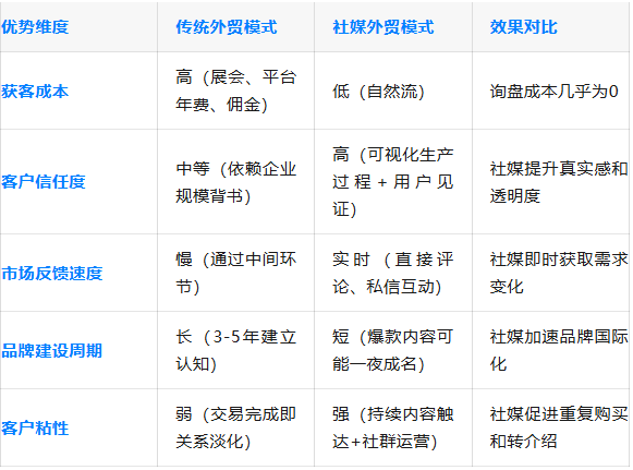 传统外贸渠道如展会、国际展等传统平台成本逐年攀升,效果却不断稀释。外贸社媒重塑了国际贸易的链接方式,成为中小企业的低成本高效率选择。