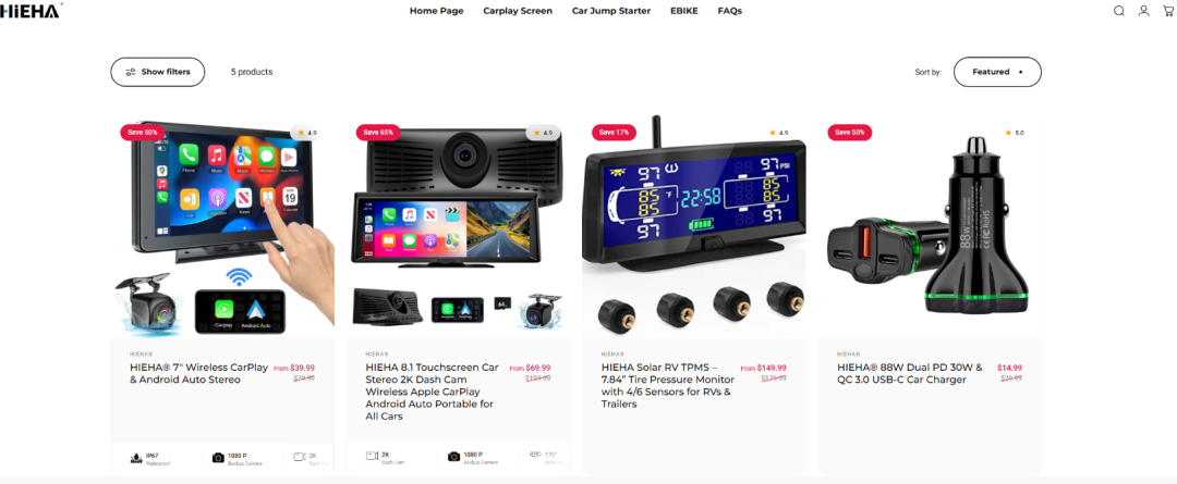 目前 Hieha 在 TikTok 外贸社媒,已形成以应急启动电源为核心,覆盖便携式 Carplay 屏幕、倒车摄像头、车载无线充电器等产品的矩阵体系。其中便携式 Carplay 车载娱乐屏幕表现亮眼,近 30 天外贸批发销量达 2.05 万台,对应批发销售额682.337 万美元,成功效应快速辐射至全品类,夯实品牌批发业务基本盘。