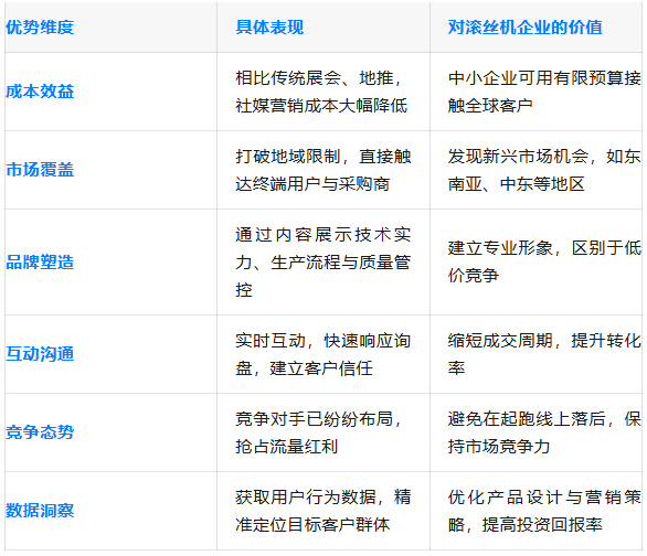 滚丝机企业利用社交媒体开展外贸的核心优势分析: